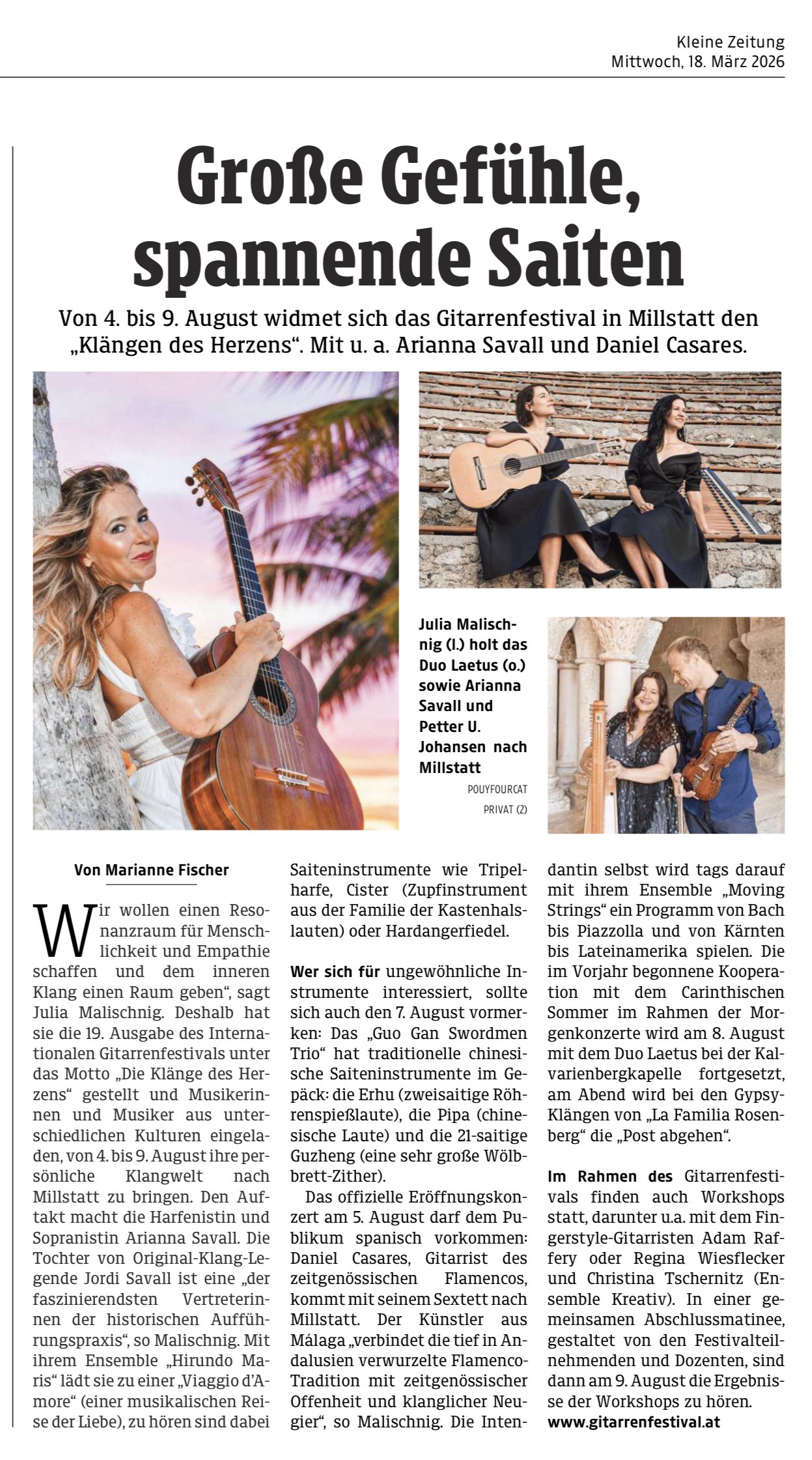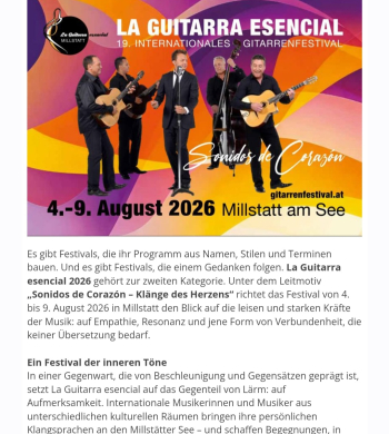 Von 4. bis 9. August widmet sich das Gitarrenfestival in Millstatt den "Klangen des Herzens".